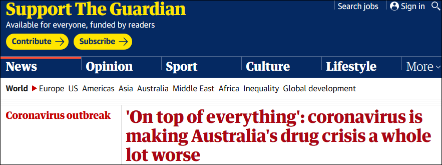 《衞報》報道截圖:新冠肺炎加劇澳大利亞毒品危機