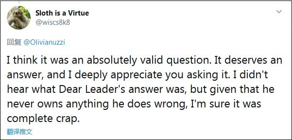 也有不少人支持努齊提出這個問題:“我認為,這絕對是個合理的問題,值得(總統)回答,我也很感謝你提了這個問題。我沒聽到總統的回答是什麼,但考慮到他從來不認為自己錯了,我相信他的回答都是胡扯。”