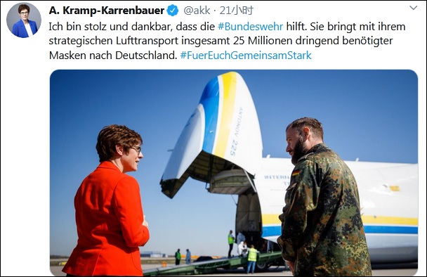 德國防長在社交媒體上發佈了接收口罩現場