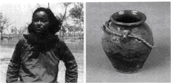 為保證支前泗水縣大廠村成立的託兒所,託兒所保育員王長梅和她看護的孩子