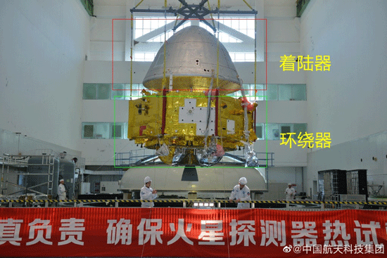 去年10月,我國已經公佈了火星探測器的外觀圖。綜合圖片和有關公開文獻信息,這艘現在已經被命名為”天問一號“的探測器由兩個部分構成,其中上半部分的鈍頭體為着陸器,帶有噴嘴的下半部分為環繞器。在發射後,天問一號將進入地火轉移軌道飛行,着陸器和環繞器在火星附近分離。着陸器落地火星表面,除了對落點就地開展探測外,還會放出巡視器(火星車),對落點附近的區域進行進一步探測。而環繞器則留在環繞火星的軌道上,在進行探測的同時,也充當火星車與地球之間的“信使”,提供通信中繼服務。