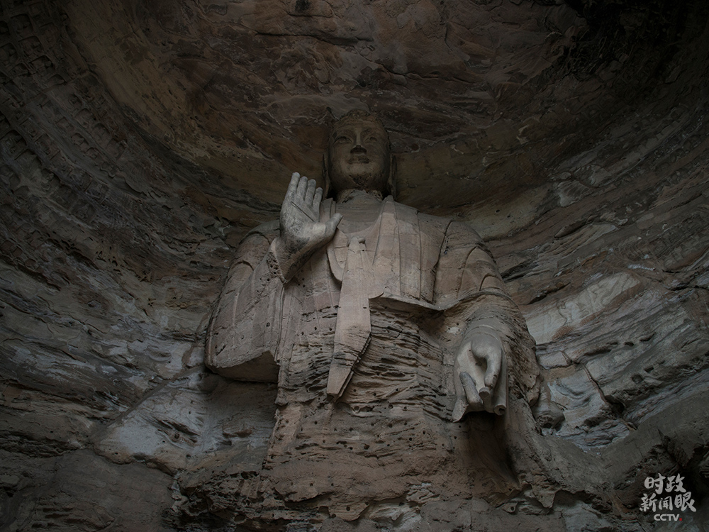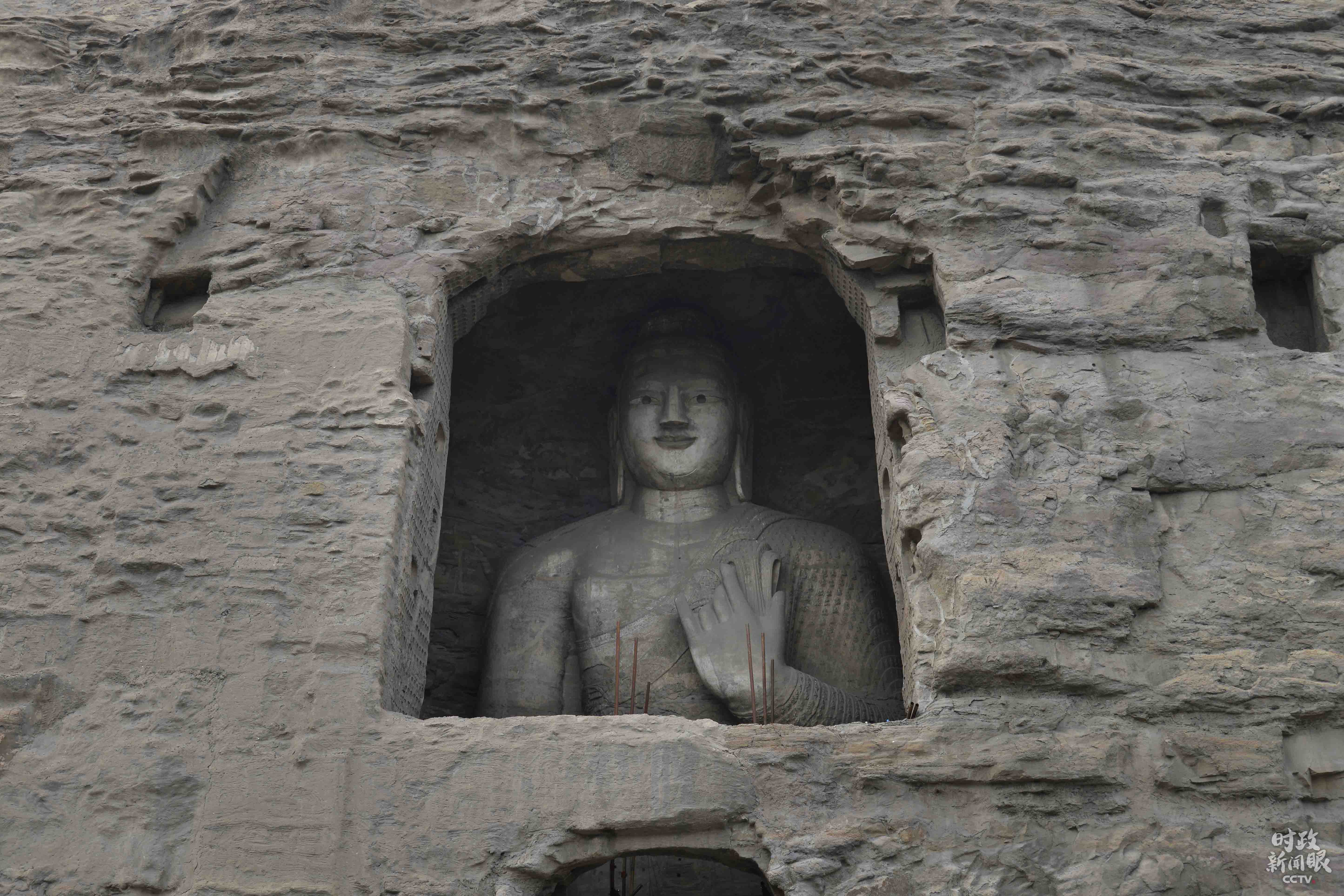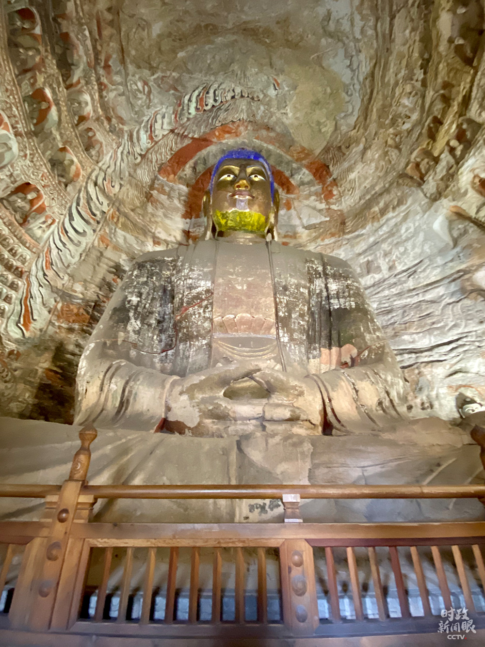 △第3窟是雲岡最大的洞窟,又名“靈巖寺”,屬於中期石窟。主尊阿彌陀佛高10米。(總枱央視記者李輝拍攝)