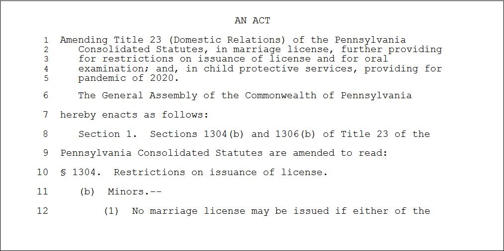 而在此以前,16歲以下的申請人可以在法庭的批准下獲得結婚證,而16歲到18歲的申請人,可以在父母的同意下獲得結婚證。這些都屬於該州婚姻法律中的“例外情況”。