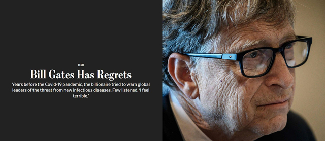 2014年發生埃博拉疫情之後,蓋茨曾在接受《華爾街日報》採訪時表示:“整體而言,世界還沒準備好應對大流行。”