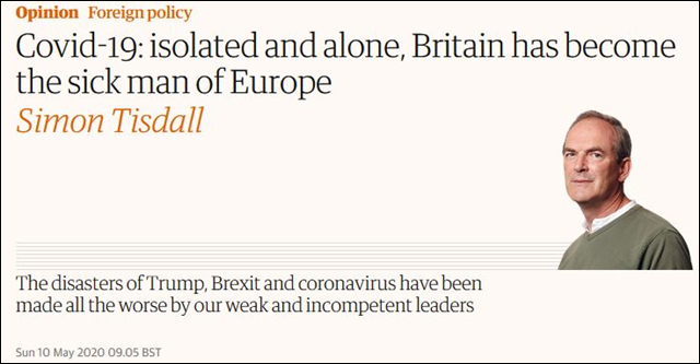 (觀察者網訊)英國《衞報》專欄作家西蒙·蒂斯達爾(Simon Tisdall)5月10日發表社論稱,孤立無援的英國已經成為“歐洲病夫”。