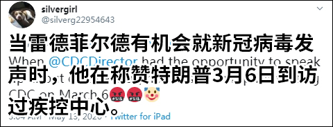 他提到,中美兩國疾控中心的負責人截至一月中旬已經3次通話。而在中國等其他國家開展大規模檢測時,美國卻在“不務正業”。為此疾控中心主任雷德菲爾德應該負責。