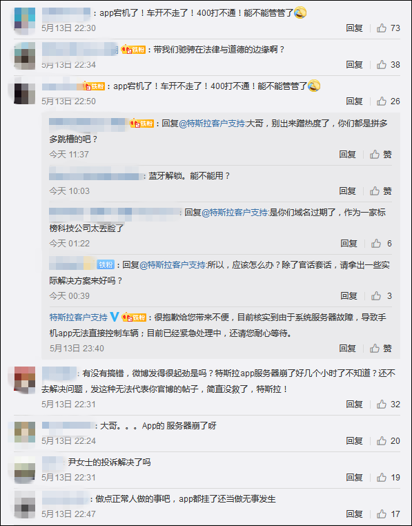 對此,得到官方認證的@特斯拉客户支持 則在評論區回應網友稱,導致手機APP無法直接控制車輛的原因是系統服務器故障。