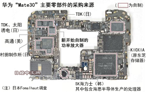 另外還發現,在此次的新型5G版手機上,難度較高的通信芯片也部分採用了由海思半導體研發的產品。在過去的4G手機上,這部分芯片原本採用的是美國大型通信芯片企業思佳訊(Skyworks Solutions)的產品,如今華為已經能獨自進行研發。