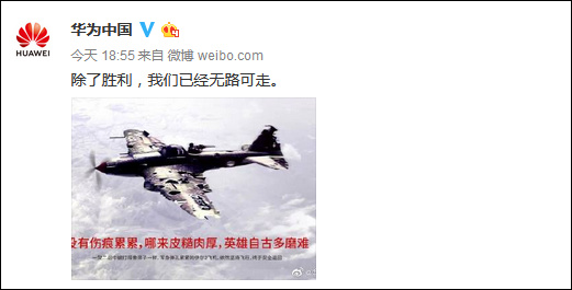 16日,華為在公眾號“心聲社區”和微博先後發了一張圖:一架二戰中被打得像篩子一樣,渾身彈孔累累的伊爾2攻擊機,依然堅持飛行,終於安全返回。