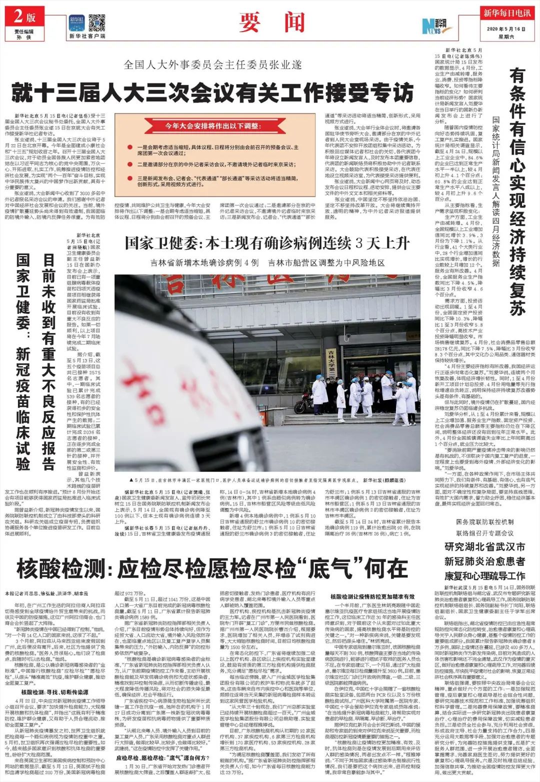 醫療機構、疾控機構是抗擊新冠肺炎疫情的主力軍。記者在廣州市第一人民醫院看到,醫院專門開闢“復工門診”,方便市民做核酸檢測。據廣州市第一人民醫院院長曹傑介紹,根據要求,醫院增加了相關人員,並增添了試劑購進等,大大縮短核酸檢測時間,目前日均核酸檢測量為1500份左右。