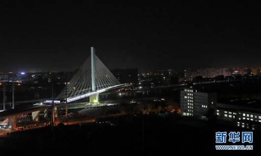 4月27日,位於瀋陽的1.5萬噸重的非對稱獨塔斜拉大橋成功轉體。新華社記者楊青攝