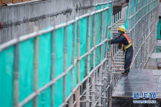 工人在深圳光明科學城啓動區項目工地作業(3月12日攝)。新華社記者梁旭攝