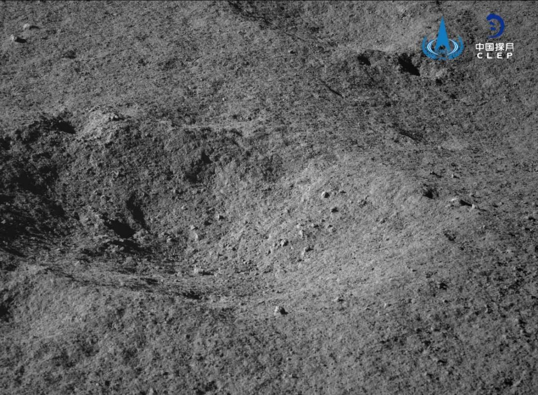 基於第17月晝LET01704點全景相機拼接影像、DOM影像等數據情況,在“玉兔二號”月球車當前位置西南方向距離3米處,發現一直徑約為1.3米、深度不超過20釐米的小坑,小坑的中央及東南方向,存在反射率較高的物質,同周圍月壤的亮度有明顯區別。待通信資源恢復後,“玉兔二號”月球車搭載的紅外成像光譜儀將對該小坑的特定區域進行探測,敬請期待。