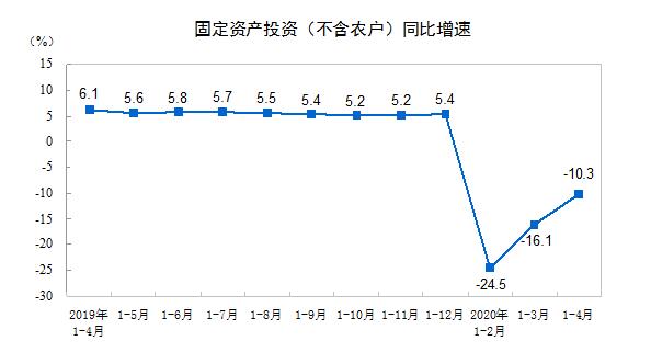 2020年1—4月份全國固定資產投資(不含農户)下降10.3%(數據來源:國家統計局)