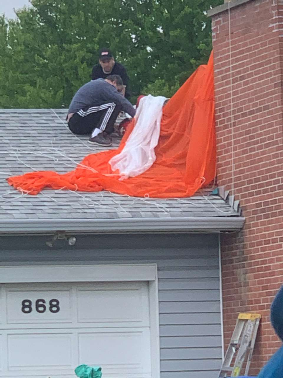 一名飛行員墜落到屋頂上 圖源:社交媒體
