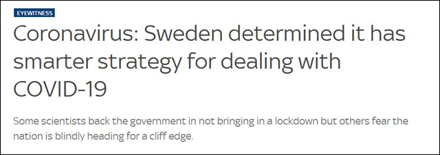 天空新聞台報道截圖:瑞典認為其應對新冠病毒的策略更聰明