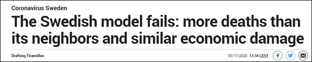 對此,西班牙《馬卡報》17日直白地指出,“瑞典模式”已經失敗:確診數高於鄰國,經濟損失也沒降低。