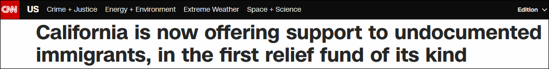 據美國有線電視新聞網(CNN)和加州本地媒體《佛瑞斯諾蜜蜂報》(The Fresno Bee)當地時間18日報道,為幫助那些在疫情期間無資格獲得聯邦補助金和失業救濟的非法移民,加州州長加文·紐森(Gavin Newsom)上個月宣佈,將會設立1.25億美元的補助基金。