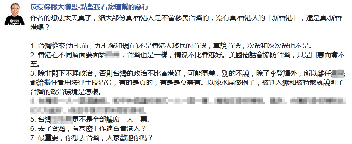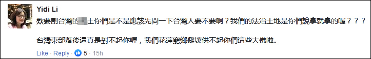 而接納這個“新香港”的重擔則落在了台灣的肩上。文章煞有介事地分析稱,現在的香港,土地總面積是1106平方千米,但真正被開發了的地方才300平方千米左右,所以台灣要給他們騰的地方也就200-300平方千米,他們這幫人可以去台灣島東部地區“尋找土地”。