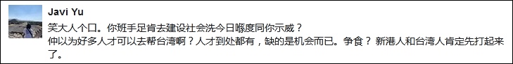作者稱,去年蔡英文能夠勝選,正是由他們這些香港人的“抗爭”促成,所以這是一個重要籌碼,再加上香港有很多專業人才、年輕勞動力,可以幫助台灣“加快國際化”。