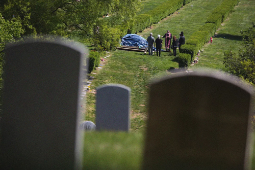5月14日,在美國紐約布魯克林一處墓地,人們參加葬禮