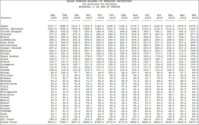 但據美國財政部5月15日公佈的數據顯示,3月美債的外國持有者總共減持2566億美元。中國3月減持美國國債約107億美元,目前中國持有美債1.081萬億美元。不過中國在1月和2月曾連續增持美債。