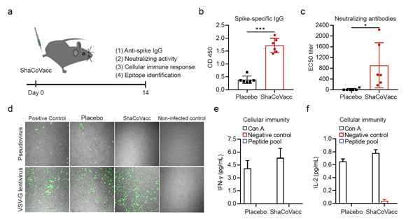 為了評估中和抗體的產生,還使用了編碼螢火蟲熒光素酶的刺突假型HIV進行了中和測定——一種成熟的偽病毒中和測定。有趣的是,在研究中,單次注射ShaCoVacc可以誘導針對SARS-CoV-2的即刻有效免疫反應,而滅活疫苗則需要至少兩次或三劑注射。