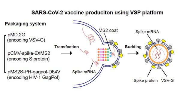 為了產生類似天然的免疫原,又不引起感染,研究者通過將編碼mRNA刺突蛋白(Spike)注入的病毒模擬顆粒(VSPs)內部,該病毒模擬顆粒由慢病毒顆粒衍生而來;研究者還對病毒模擬顆粒表面的刺突蛋白進行了修飾。該研究表徵了新疫苗平台的mRNA拷貝數、糖基化狀態、轉導效率和先天免疫特性。