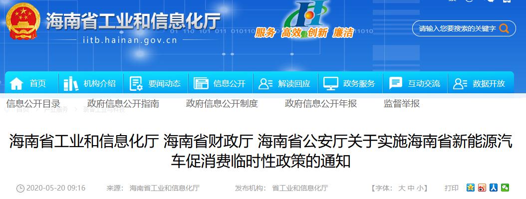 海南省工業和信息化廳網站5月20日消息,近日,海南省工業和信息化廳、省財政廳、省公安廳聯合印發《關於實施海南省新能源汽車促消費臨時性政策的通知》,對在海南省購買新能源汽車的消費者進行獎勵。
