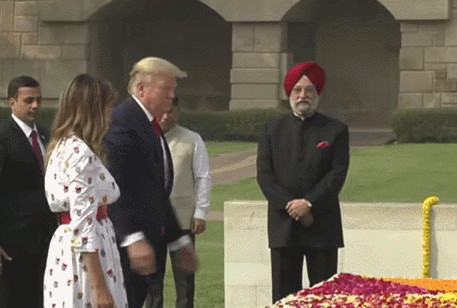 2月25日,特朗普在拉賈特向聖雄甘地致敬