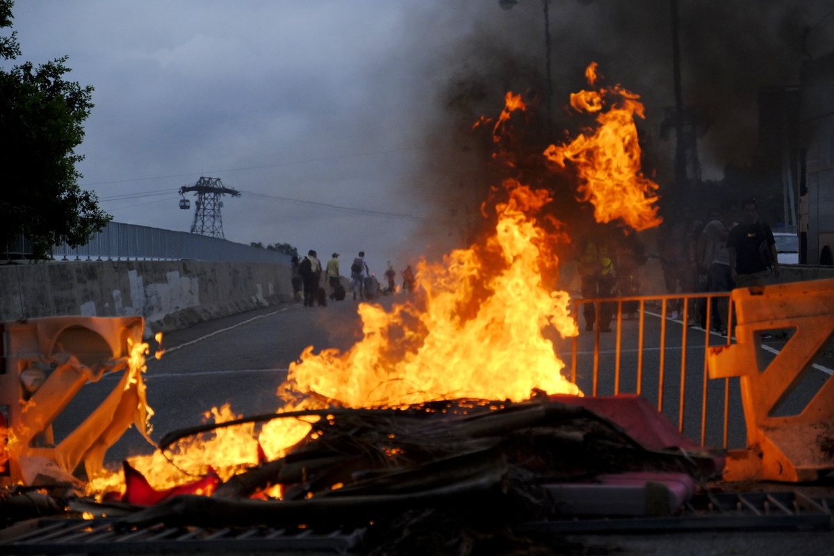 暴徒在香港東涌縱火併破壞東涌港鐵站資料圖 圖自新華社