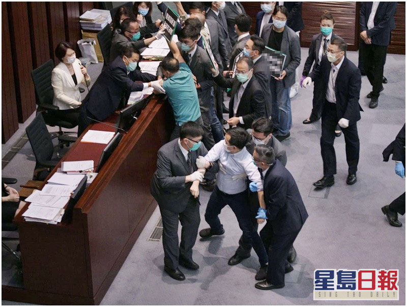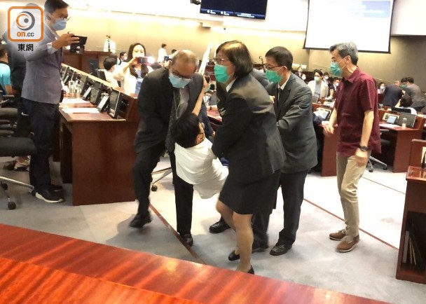 會議過程中,多名反對派議員被驅逐並被抬離會場 圖自《星島日報》