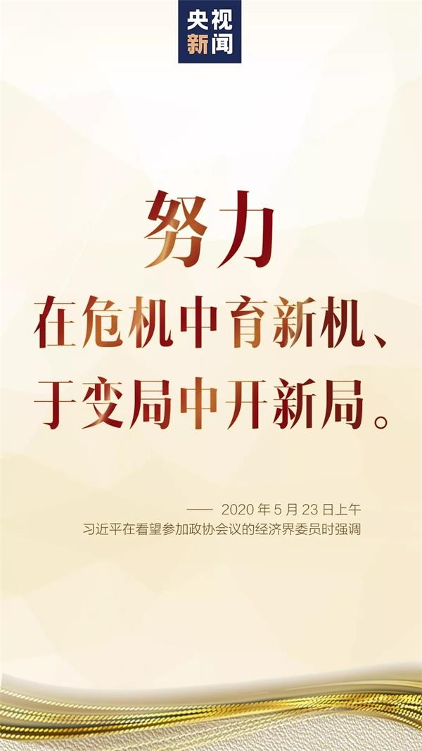23日上午,習近平看望了參加全國政協十三屆三次會議的經濟界委員,並參加聯組會,聽取意見和建議。他強調,要堅持用全面、辯證、長遠的眼光分析當前經濟形勢,努力在危機中育新機、於變局中開新局。