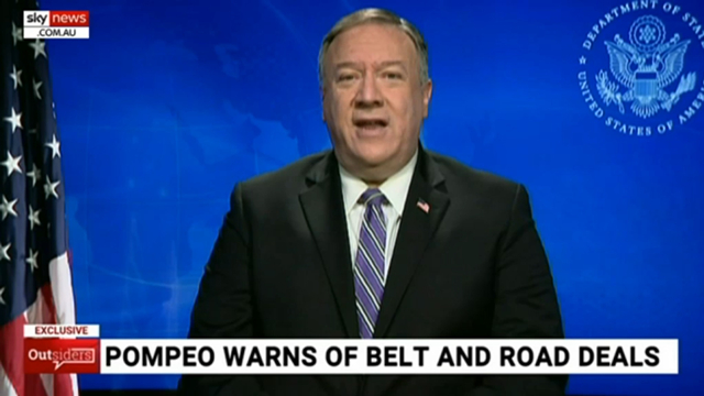 蓬佩奧接受天空新聞採訪,就“一帶一路”協議對澳警告 視頻截圖