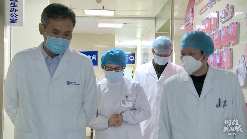△疫情暴發後,羅傑(左一)帶領十堰市救治專家組奮戰在抗疫最前線,“吃住不離院”。