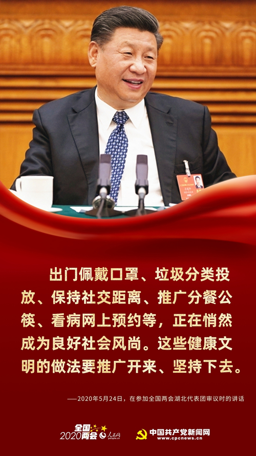 同時,習近平指出,出門佩戴口罩、垃圾分類投放、保持社交距離、推廣分餐公筷、看病網上預約等,正在悄然成為良好社會風尚。這些健康文明的做法要推廣開來、堅持下去。