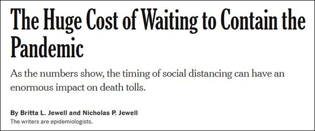 《紐約時報》截圖 “用等待控制疫情的巨大成本”