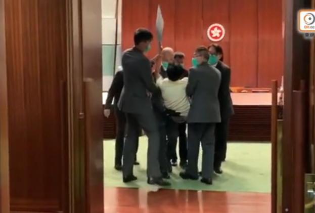 香港立法會恢復《國歌法》二讀,多名反對派議員鬧事被逐