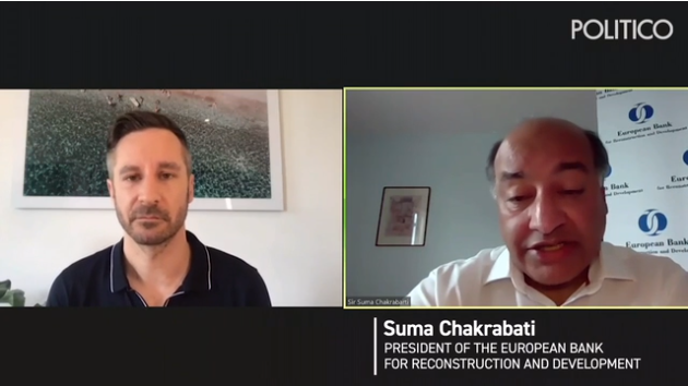 美國Politico新聞網5月27日報道稱,在該網站與美國智庫“大西洋理事會”舉辦的聯合線上會議上,歐洲復興開發銀行行長查克拉巴蒂表示,為修復受疫情打擊的經濟體,目前所需私人與公共資金遠超多邊金融機構的能力:“我們需要從頭開始。”
