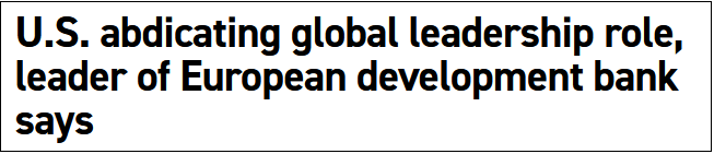 美國放棄了全球領導地位 圖片來源:Politico標題截圖
