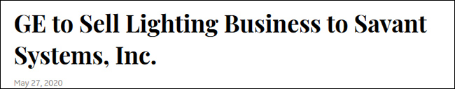 (觀察者網訊)當地時間5月27日,美國通用電氣(GE)在其官網發佈聲明,宣佈將其照明業務全部出售給智能家居公司賽萬特(Savant)。《華爾街郵報》援引消息人士的話稱,這筆交易的價值約為2.5億美元。