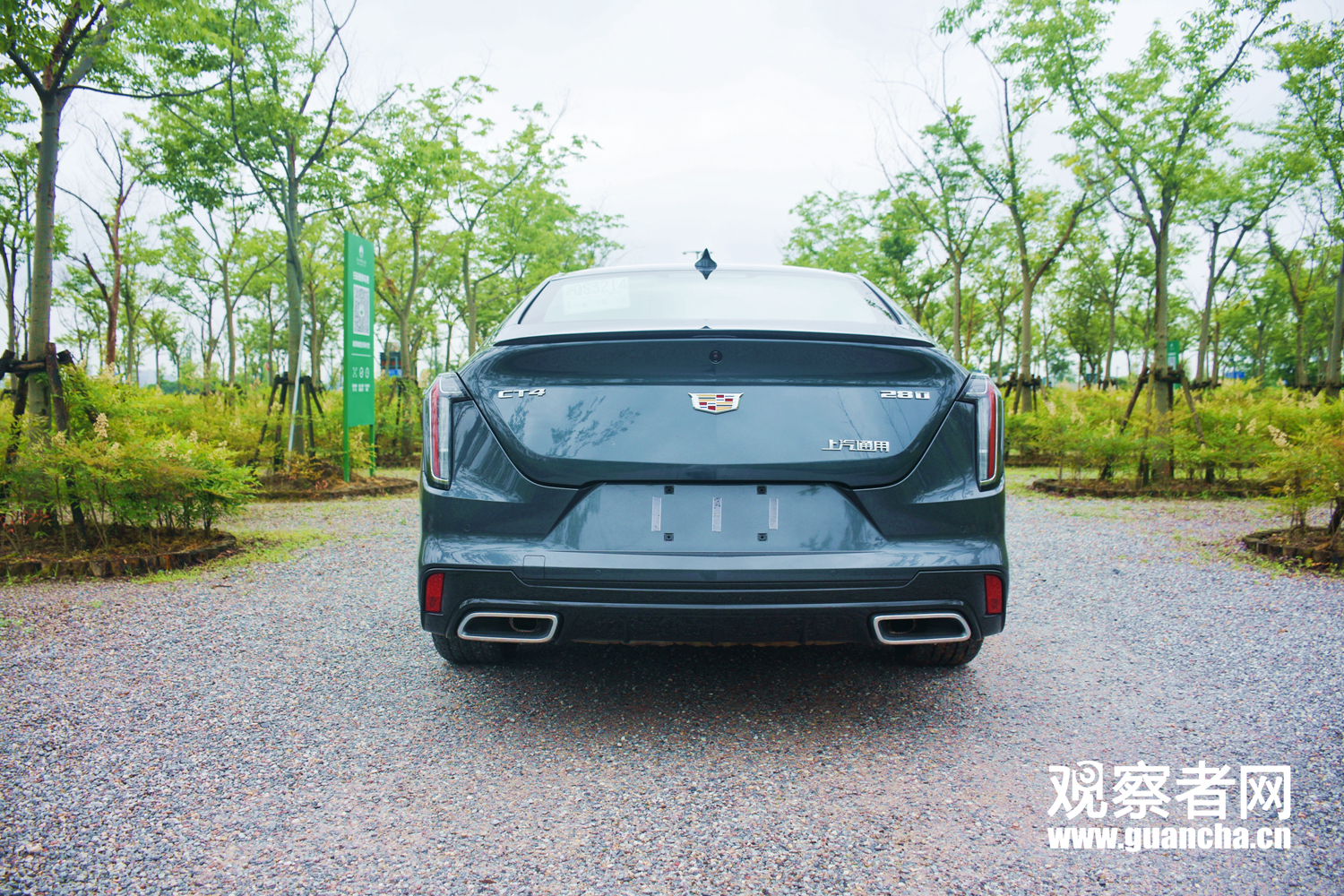 相較前臉,CT4尾部的設計較為簡單,尾燈依舊是家族式的迴旋鏢型,最大的亮點在於後備廂上部的小鴨式擾流板,兩塊方形排氣管體積較大,同樣帶給人一種時刻在戰鬥的感覺。
