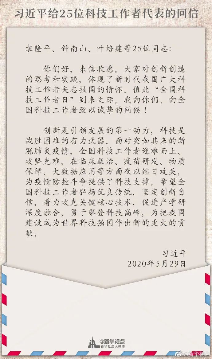 兩會剛剛閉幕。5月29日,一封充滿暖意的回信送到了25位科技工作者的手中。
