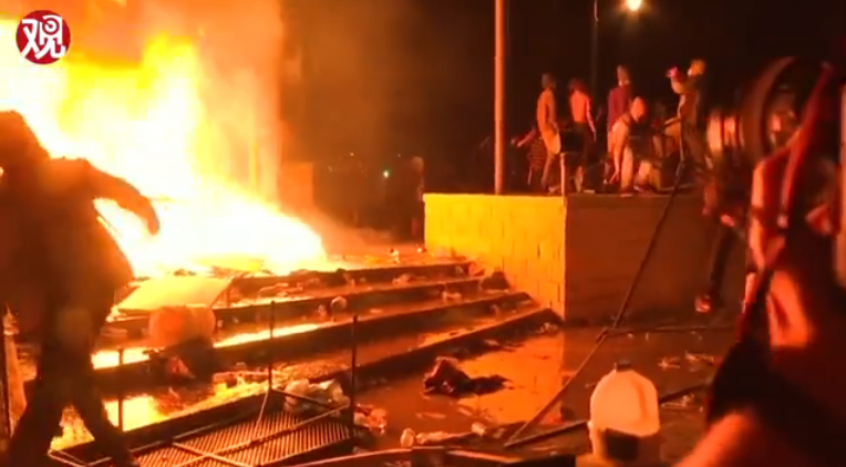 5月28日晚,示威者點燃明尼阿波利斯一所警察局