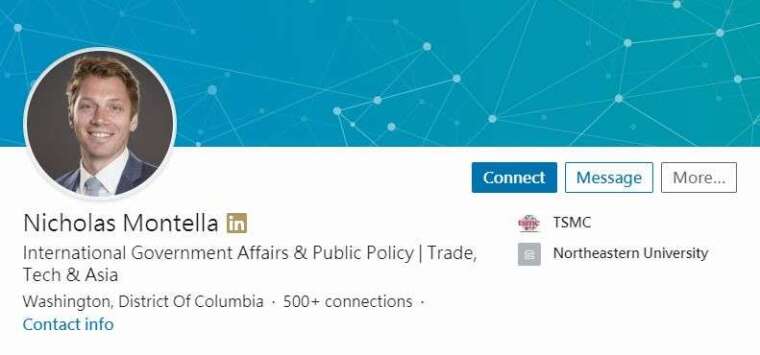 彭博社5月28日爆料,美國商會(US Chamber of Commerce)前高管尼古拉斯•蒙特拉(Nicholas Montella)5月份已加盟台積電,出任該公司政府關係主管。就在幾個月前,英特爾前首席遊説人士彼得•克利夫蘭(Peter Cleveland)也已經成為台積電全球政策副總裁。