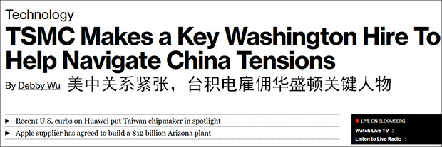 彭博社稱,台積電此舉旨在緩和中美關係惡化對其經營的影響。