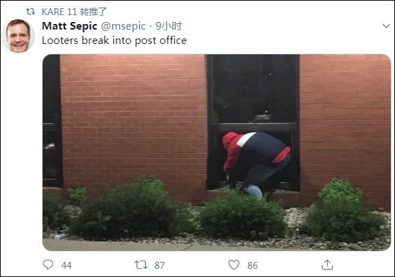 另一家當地媒體“KARE 11”報道稱,29日晚,一輛行進中的UPS貨車遭搶劫,甚至有人闖進了郵局。