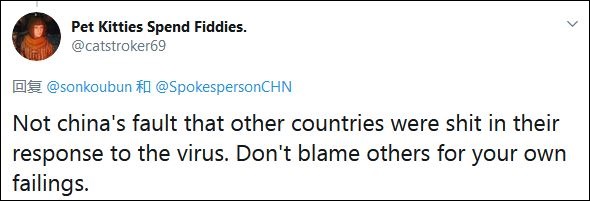 有人則看穿了特朗普政府甩鍋中國的伎倆。“其他國家應對(新冠)病毒不力,並不是中國的錯。不要因為自己的錯誤,去指責別人。”