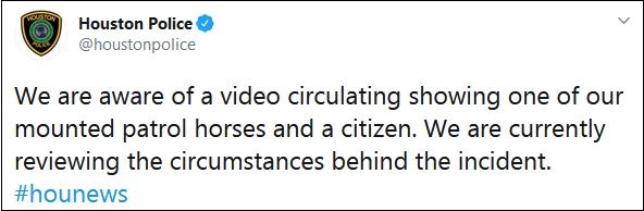 30日,休斯頓警局在其官方推特上表示,已知悉視頻中發生的事,目前正在“調查事件背後的情況”。