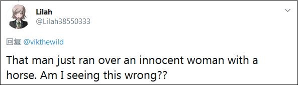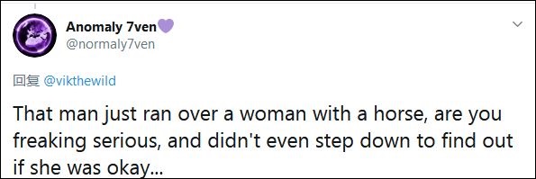 “那個人就這樣騎着馬踏過一個無辜的女人,我沒看錯吧?”